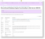 このトピックでは、SQL Server 2008 R2 でまだ使用できるものの、非推奨となった SQL Server データベース エンジンの機能について説明します。これらの機能は SQL Server の今後のリリースで削除される予定です。非推奨機能を新しいアプリケーションで使用しないでください。 ...
